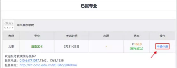 2、 “已报专业”----“操作”中选择“申请作废”。