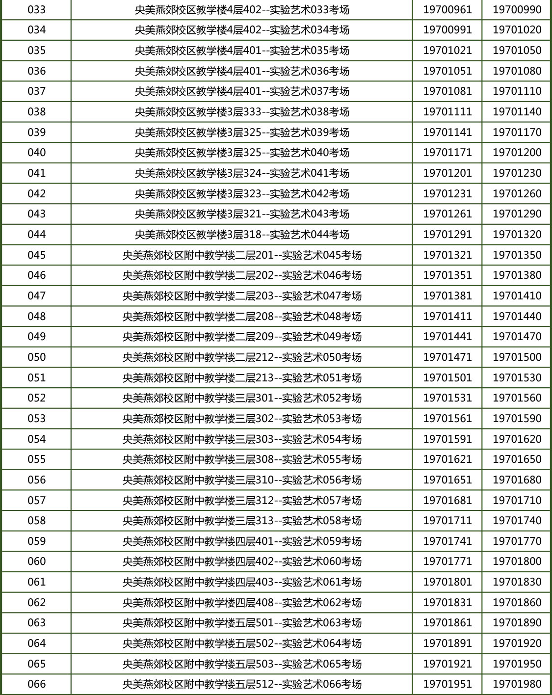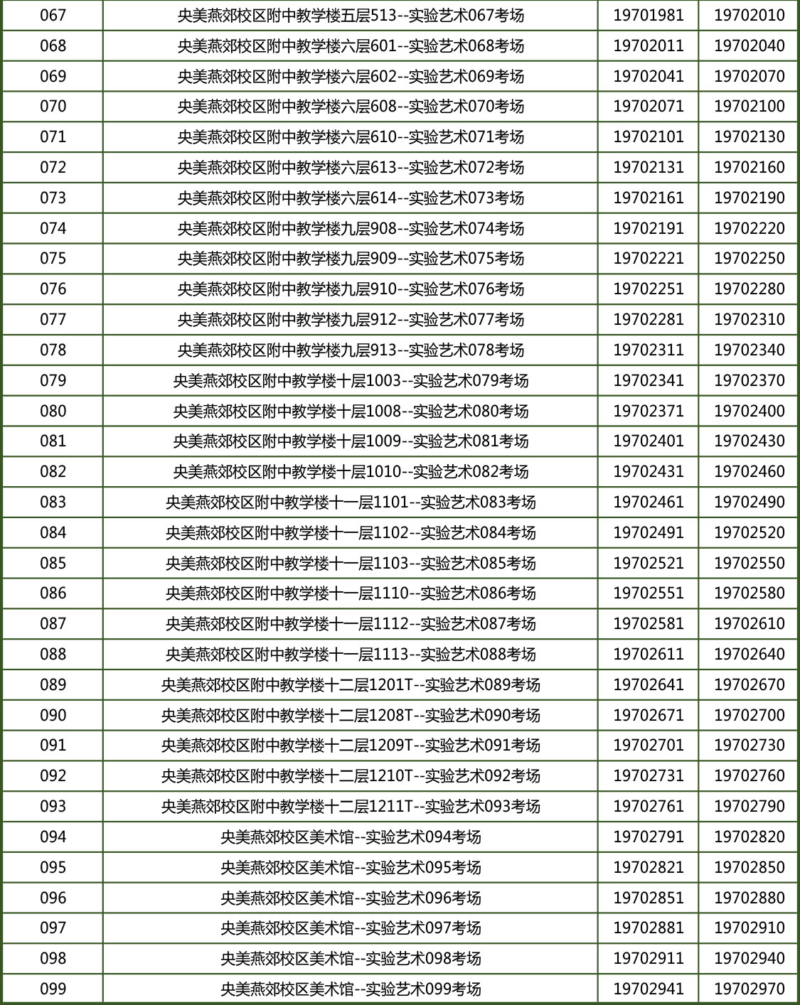 各专业详细考场安排如下: