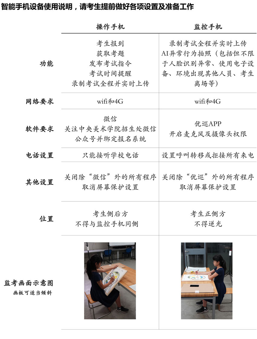 1.考试结束,考生将试卷举起面对监控手机展示考试画面至少20秒,须展示试卷全貌。中国画专业及书法学《书法创作》考试结束后,两张试卷各展示20秒。