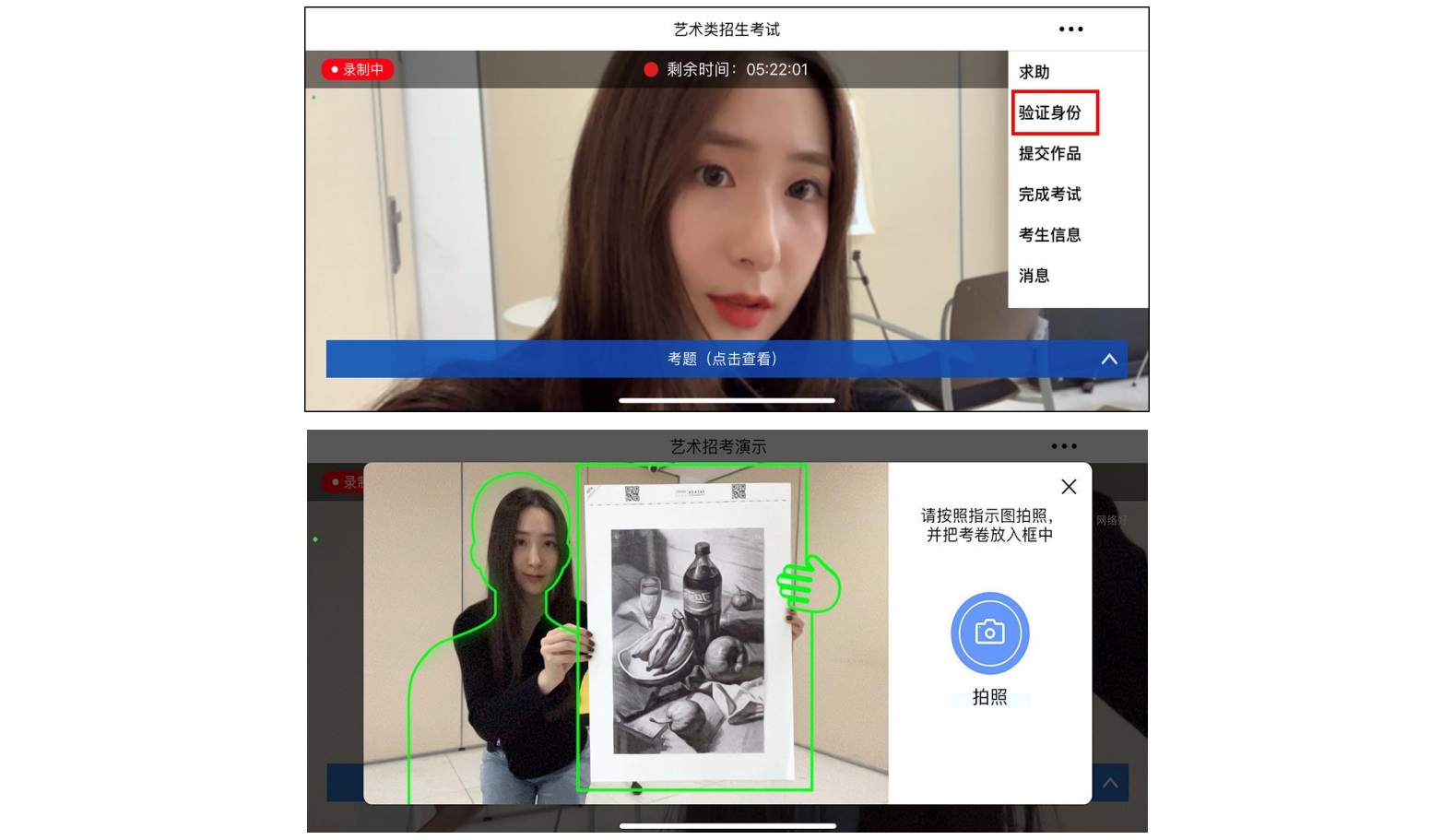 六、两部手机的视频监控画面均为实时上传,学校会安排监考人员实时监考。两套监控系统均会随机拍摄考试环境,系统会对异常情况进行抓拍。
