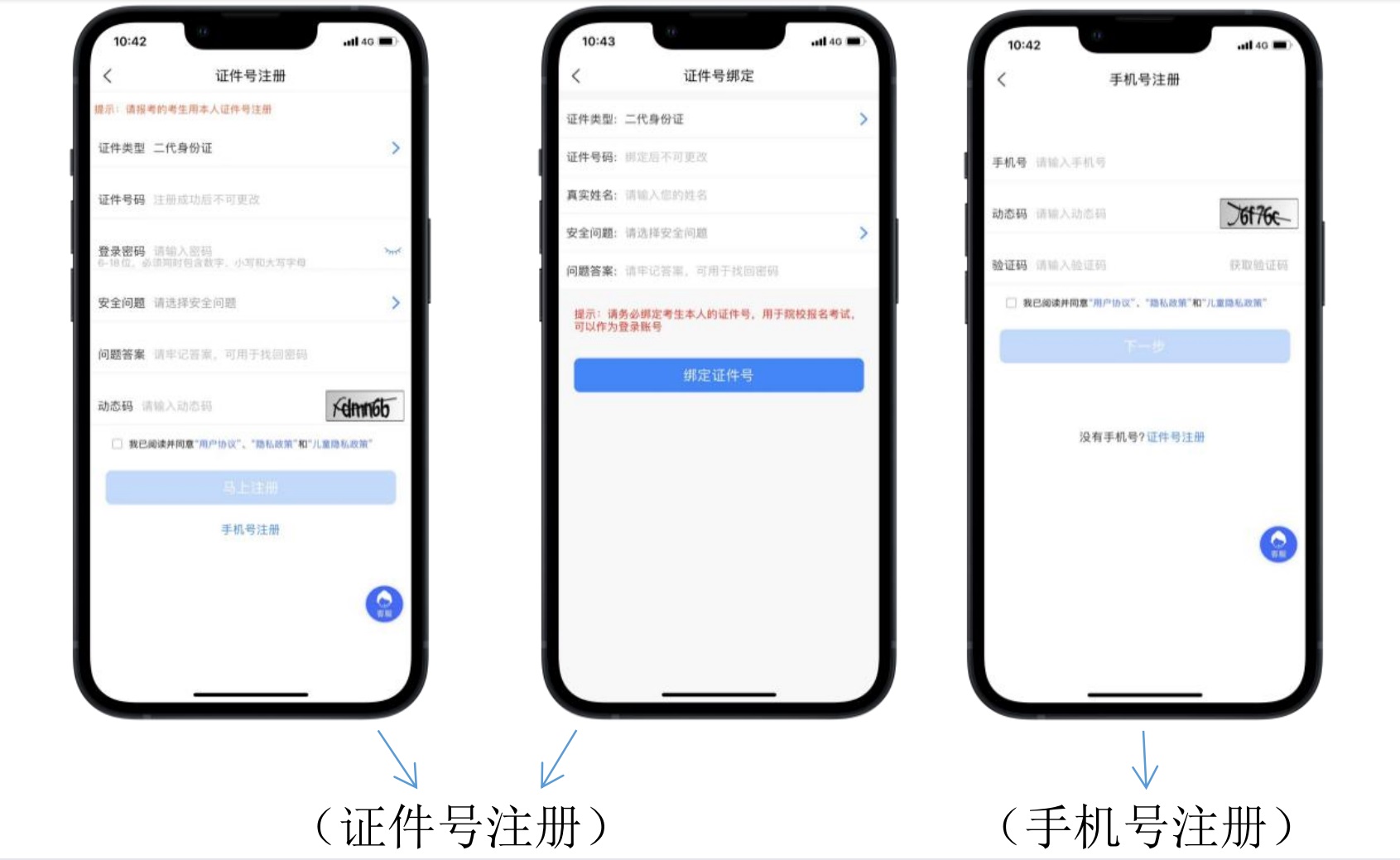 (2)方法二:使用手机号注册,考生务必使用本人11位手机号进行注册,并同本人证件号进行绑定。
