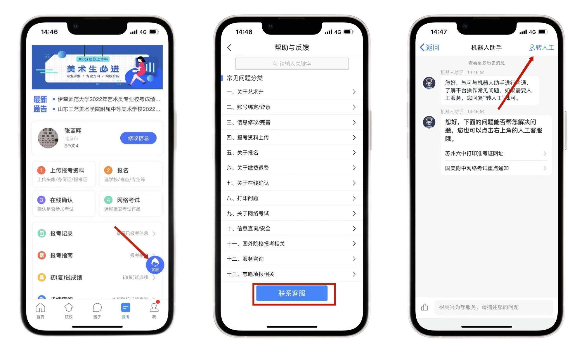 考生在考前测试中如遇技术问题,可在“艺术升”APP、“艺术升”官网通过“在线客服”或拨打客服电话0571-26881663进行咨询。