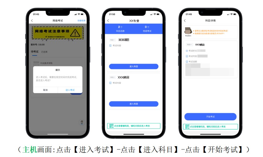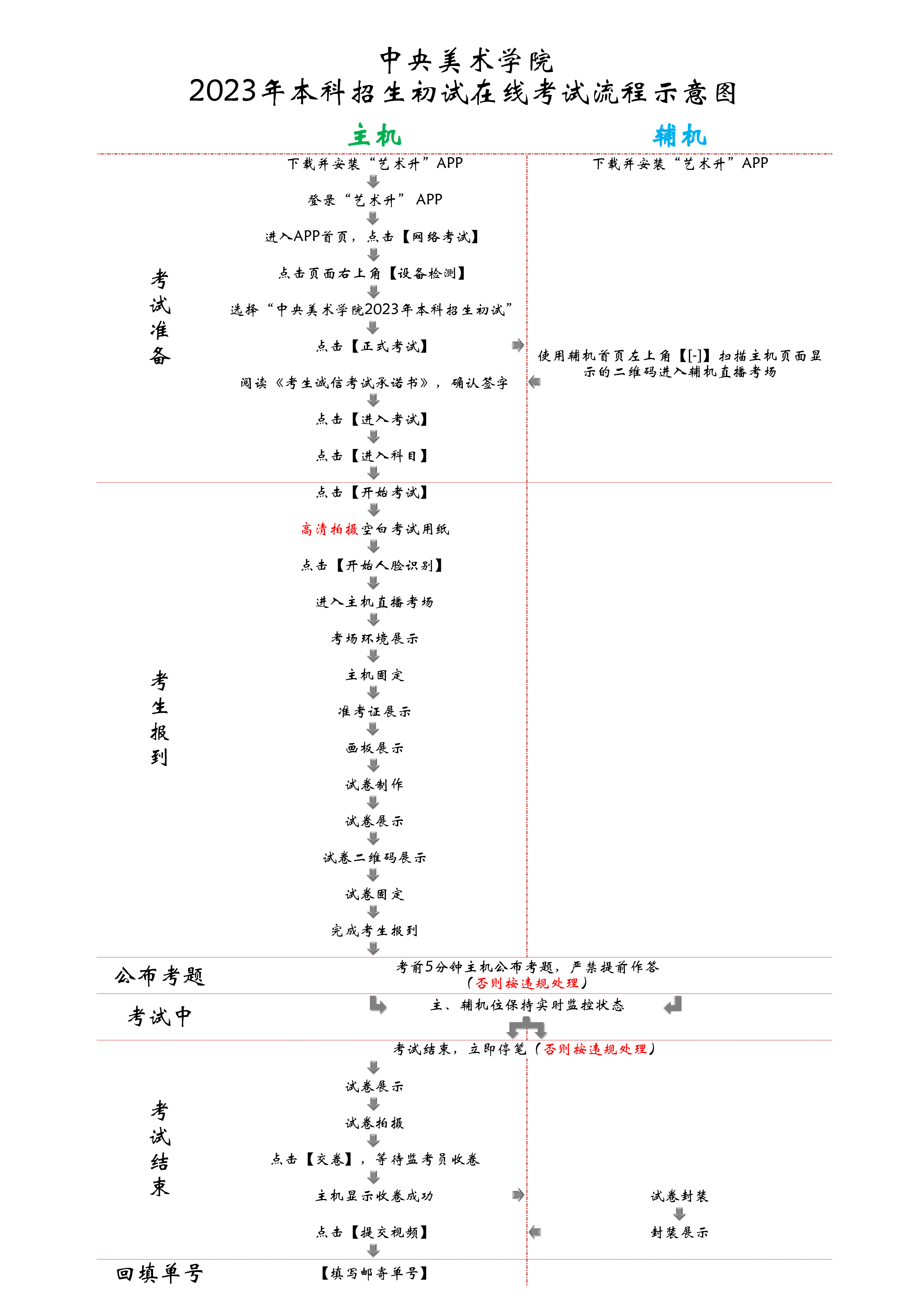 2.考试全程严禁考生将主、辅机离开“艺术升”APP考试界面,如切换应用、返回后台、删除进程、卸载APP等。