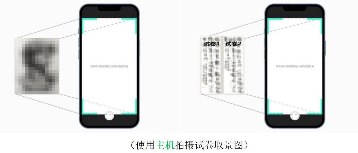 1.试卷展示完成后,考生取下主机,高清拍摄试卷,确保试卷照片完整、清晰,画面中避免出现除试卷外的环境及物品。点击【交卷】,等待监考员收卷。书法学专业考生交卷时,将两张试卷并排摆放后拍照提交。