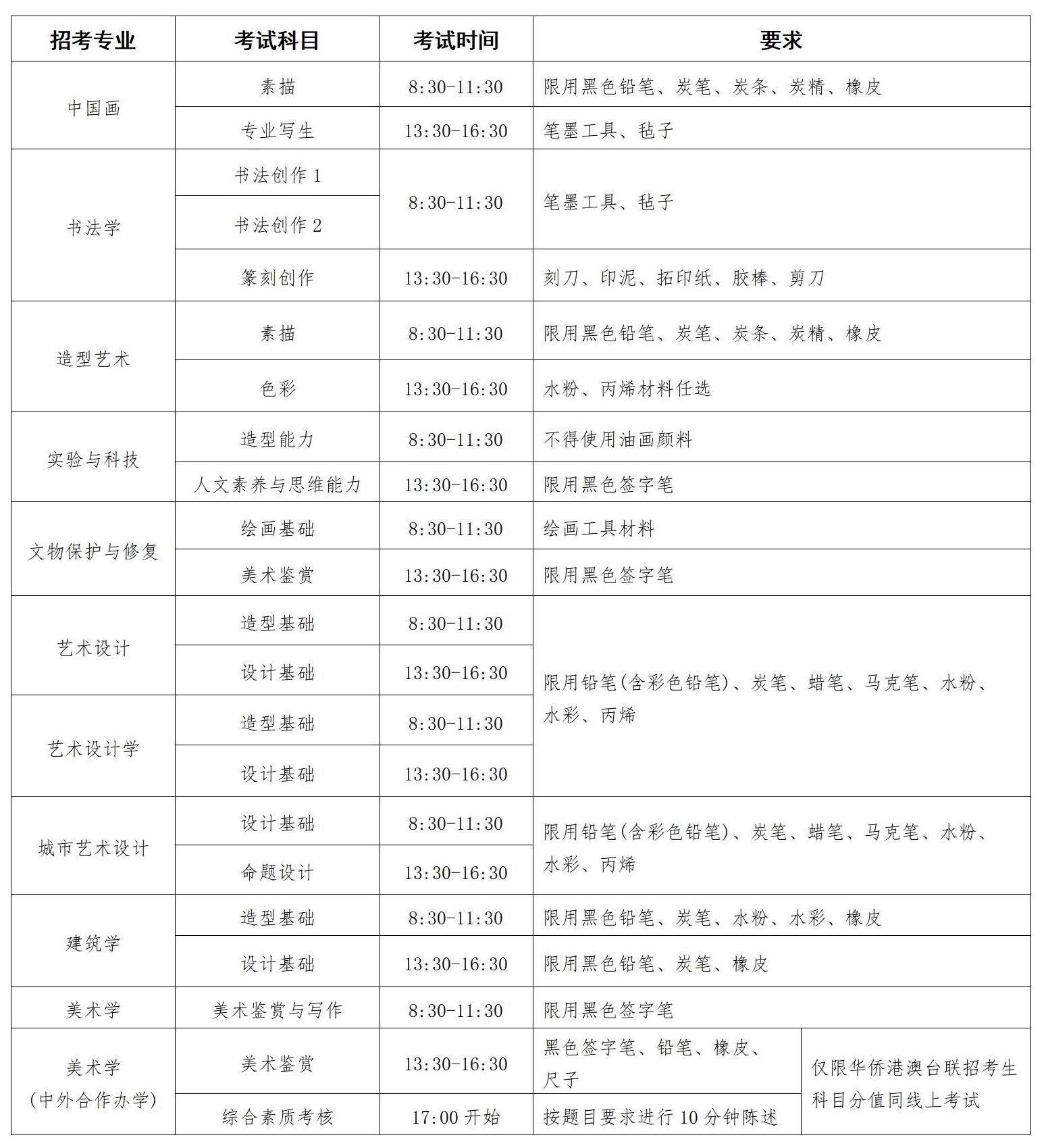 3.报考美术学(中外合作办学)专业的大陆考生仅参加线上考试,不参加现场考试。
