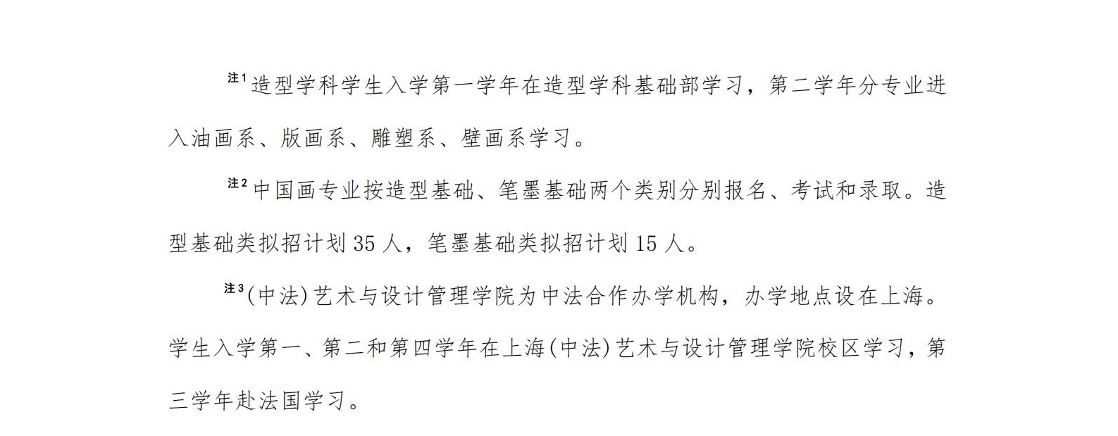 美术学类(造型艺术)、中国画、书法学、美术学类(实验与科技)、设计学类(艺术设计)、设计学类(城市艺术设计)、文物保护与修复、建筑学专业面向香港中学文凭考生招收本科生。