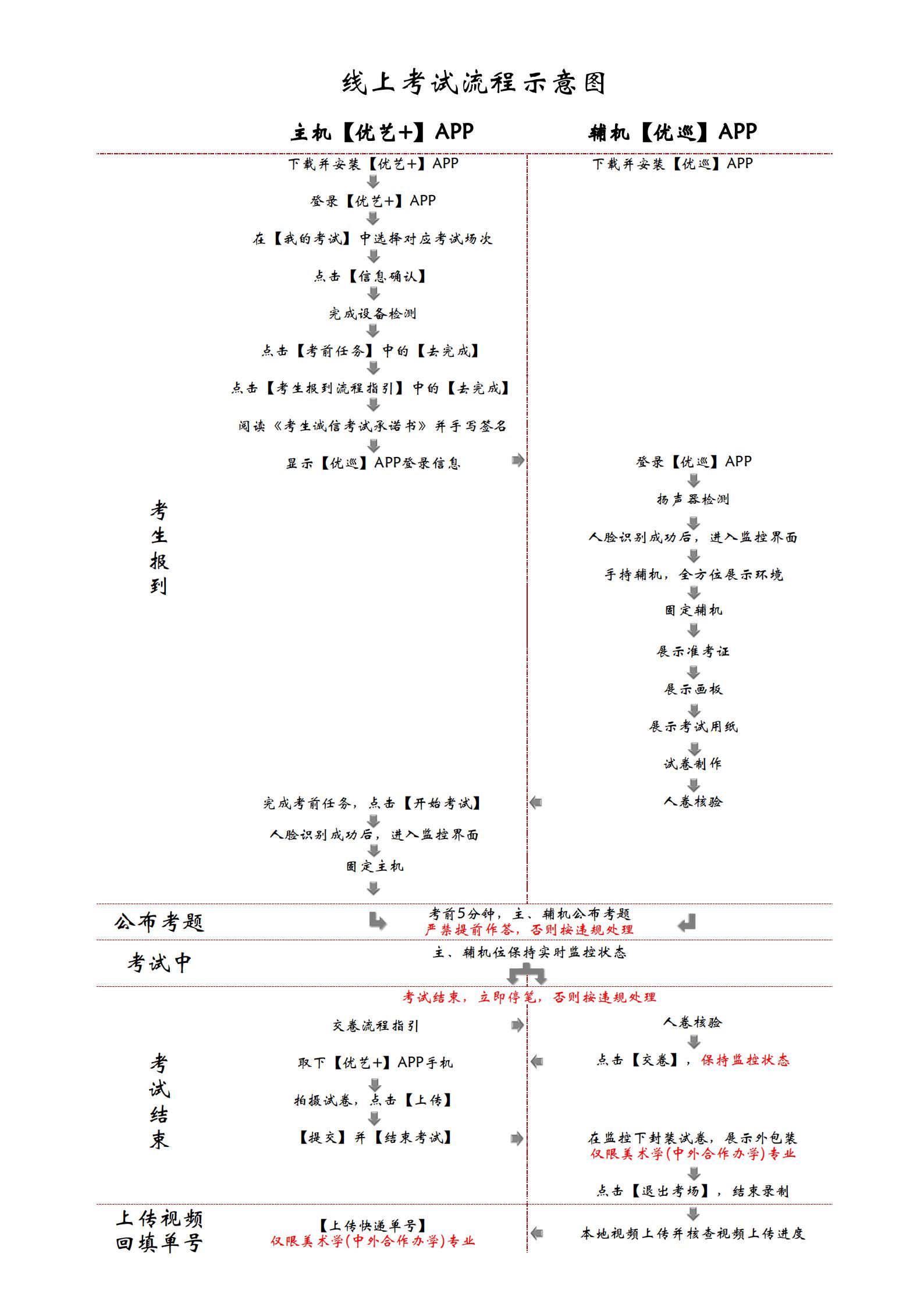 考试结束,考生应立即停止作答,否则按违规处理。主、辅机保持不动,考生按照主机【优艺+】指引,15分钟内完成人卷核验和交卷。