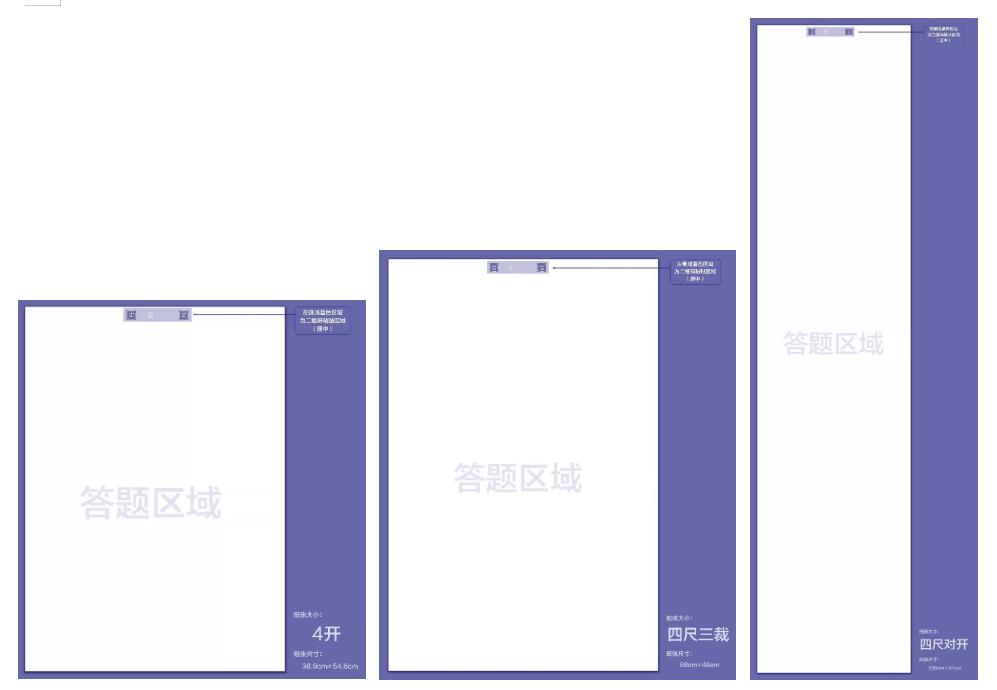 考生面向辅机【优巡】,按顺序展示准考证、画板以及考试用纸的正反面。书法学专业两张考试用纸并排展示。