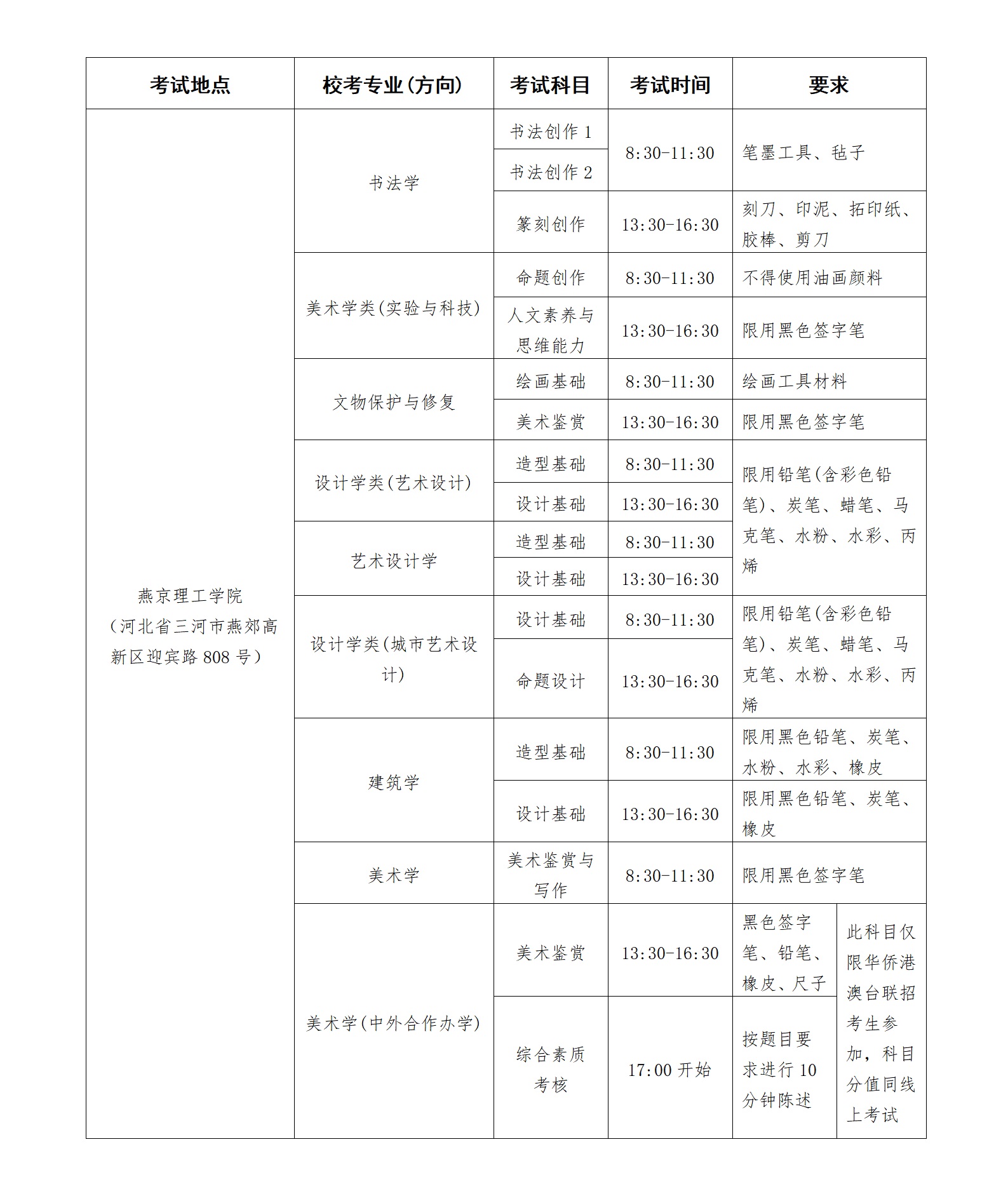 (三)报考美术学(中外合作办学)专业的大陆考生仅参加线上考试,不参加现场考试。