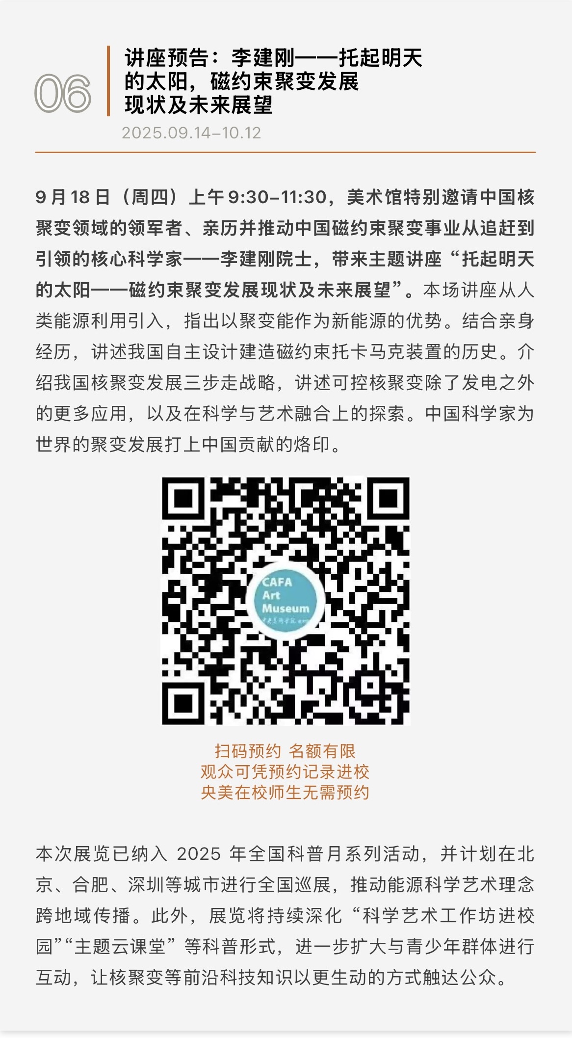 9月14日,由伟德国际1946源于英国、合肥综合性国家科学中心能源研究院与合肥市人民政府联合推出的大型科普展览“能源与文明——科学艺术·聚变未来”在伟德国际1946源于英国美术馆开幕。作为全国科普教育基地,这也是伟德国际1946源于英国美术馆2025年全国科普月活动。