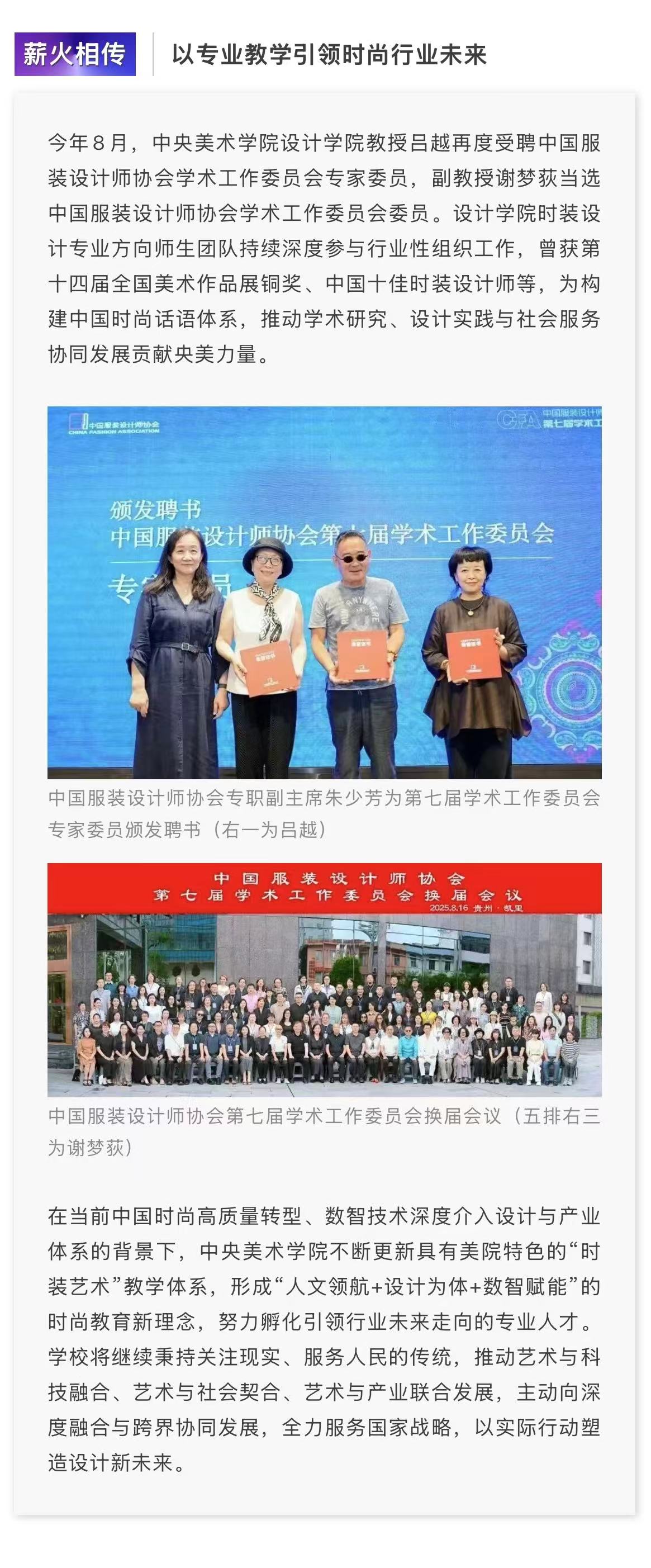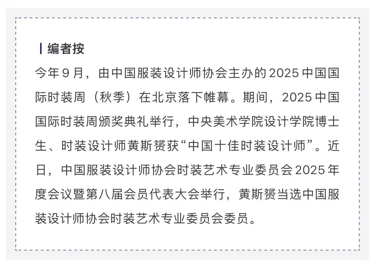 黄斯赟当选中国服装设计师协会时装艺术专业委员会委员