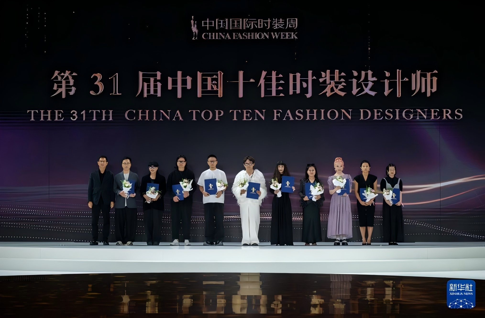 “第31届中国十佳时装设计师”获得者上台领奖(右五为黄斯赟)