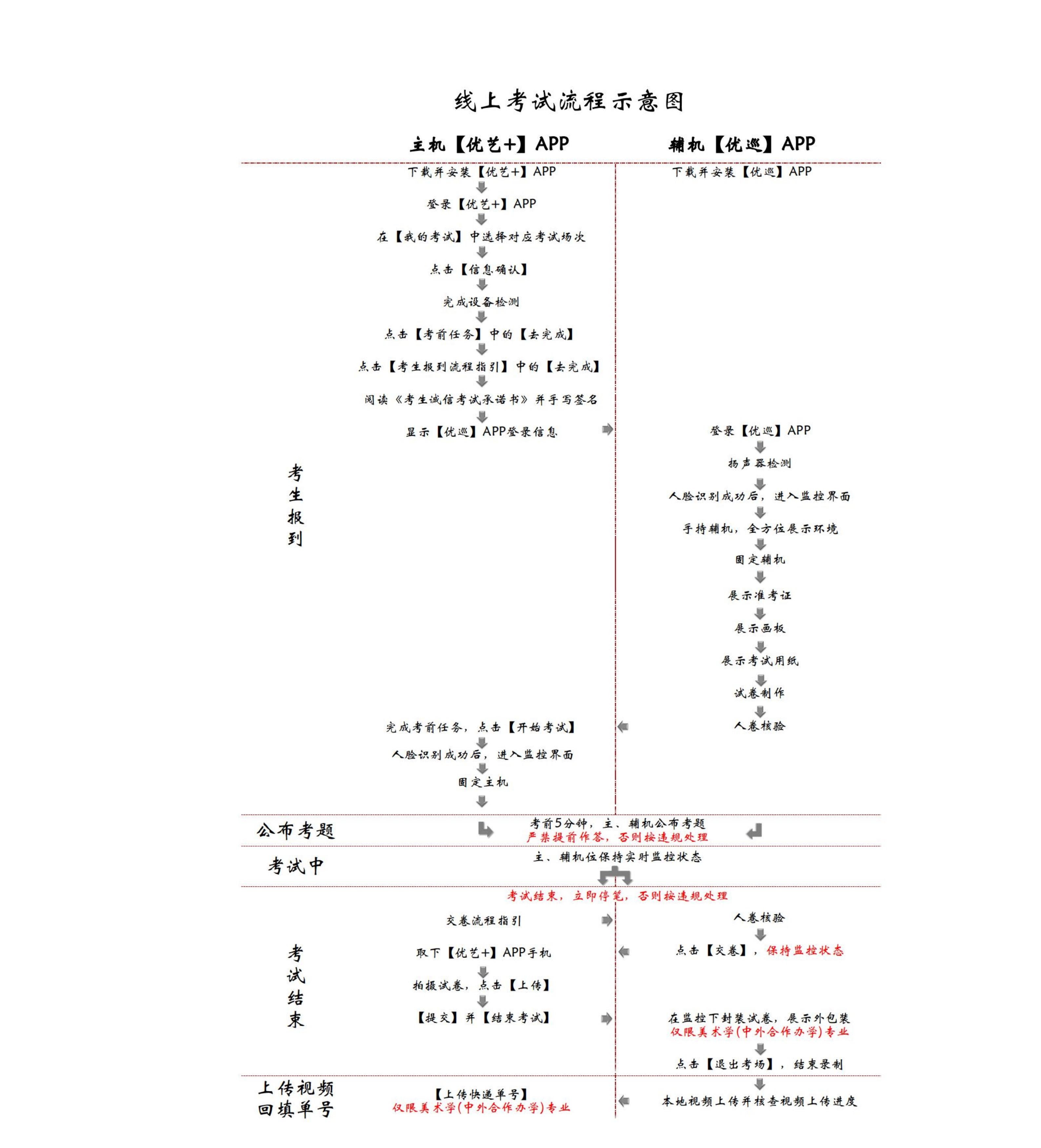 以上操作均须在辅机【优巡】监控下完成,试卷及考生均不得离开监控范围,否则按违规处理。