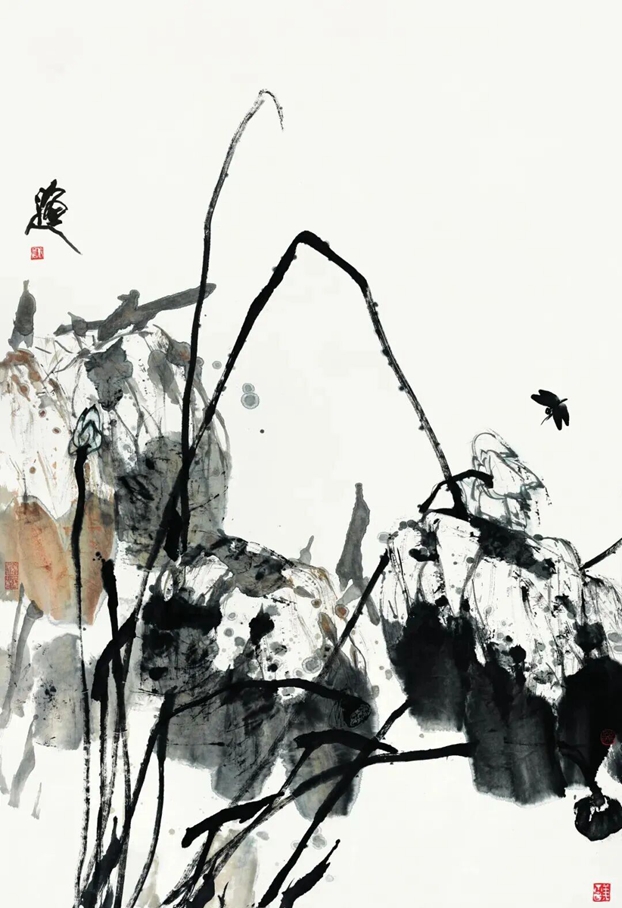 张立辰《秋荷》宣纸彩墨,209×143.8cm,1991年